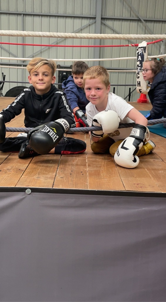 Chloé, Idriss, Loup, Melvinn et Thibault ont profité de l’activité pour se défouler avec Grégory, coach du club. Sous ses conseils avisés et avec beaucoup de motivation, les enfants ont fait de supers combats .🥊